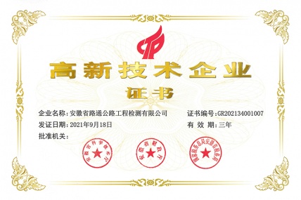 12月14日,安徽省交通建設(shè)股份有限公司下屬全資子公司安徽省路通公路工程檢測有限公司(以下簡稱路通檢測公司或公司)喜獲“高新技術(shù)企業(yè)”榮譽,標(biāo)志著路通檢測公司正...