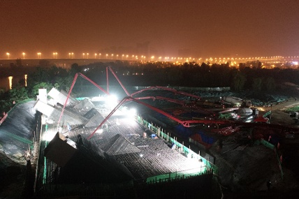 5月12日晚9時(shí),安徽省交通建設(shè)股份有限公司廣德路項(xiàng)目8號(hào)承臺(tái)大體積混凝土首層澆筑順利完成。