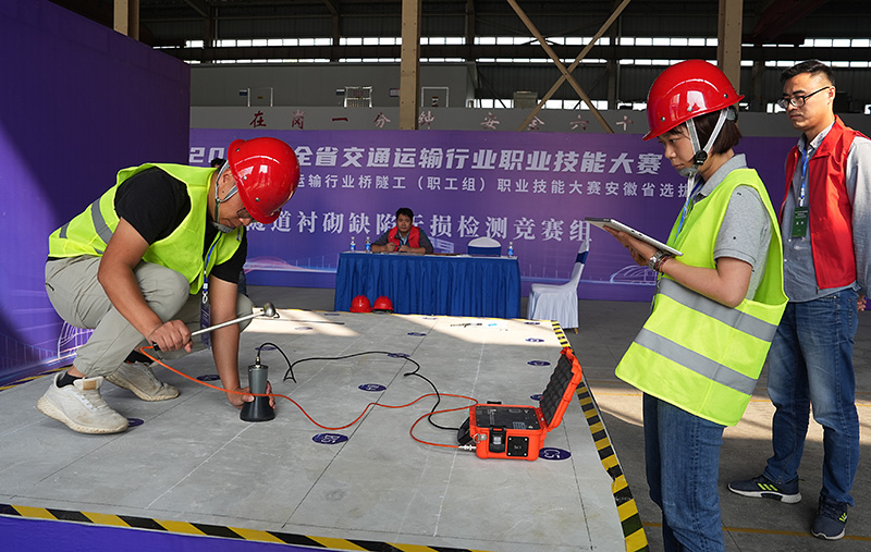 據(jù)悉,此次大賽由安徽省交通運輸廳、安徽省人力資源和社會保障廳共同舉辦。本次大賽共設置城市軌道交通行車調(diào)度員、新能源汽車維修工、橋隧工、電動港口裝卸機械司機4個職業(yè)賽項。比賽采取理論知識競賽和操作技能競賽相結合的方式,涵蓋了鋼筋骨架加工、隧道襯砌缺陷無損檢測、施工放樣3個競賽項目。