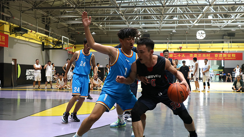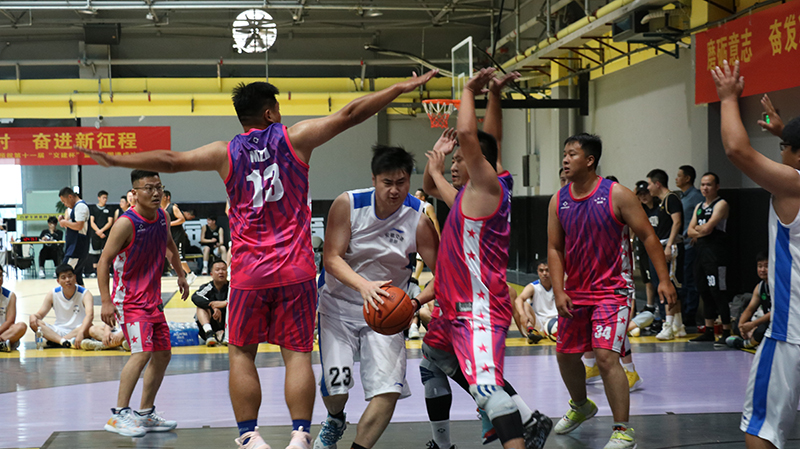 隨著一聲哨響,東、西兩側(cè)場(chǎng)地運(yùn)動(dòng)員在裁判拋出的籃球面前,屈膝發(fā)力,伸直手臂,“啪”的一聲,完成跳球,比賽正式開始。賽場(chǎng)上球鞋摩擦地面,籃球砸地的聲音此起彼伏,場(chǎng)周吶喊助威的聲音不絕于耳。此時(shí)的他們拋下平日里工作時(shí)的嚴(yán)肅形象,身影矯健、防守周密,拼盡全力奮力廝殺,他們勇敢果斷、活力無限。他們用精湛的球技和堅(jiān)韌拼搏、誓不言敗的精神,為觀眾們奉獻(xiàn)了許多精彩的瞬間。