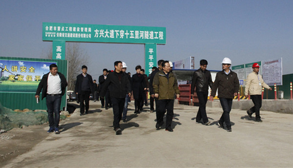 11月25日上午,安徽省委常委、合肥市委書記宋國(guó)權(quán),市長(zhǎng)凌云深入建設(shè)一線,實(shí)地調(diào)研了安徽交建承建的十五里河濕地工程和方興大道下穿十五里河隧道工程項(xiàng)目.宋書記、凌市長(zhǎng)一行到達(dá)方興大道項(xiàng)目駐地后,首先詳細(xì)了解了項(xiàng)目承建單位—安徽省交通建設(shè)股份有限公司的詳細(xì)情況;聽取了該項(xiàng)目建設(shè)的總體規(guī)劃、實(shí)施進(jìn)展、生態(tài)文明建設(shè)等重點(diǎn)工作的匯報(bào)。宋書記高興地指出,安徽交建作為合肥市大建設(shè)的先頭軍、排頭兵要有使命意識(shí)、責(zé)任擔(dān)當(dāng),工程建設(shè)過(guò)程中要注重生態(tài)環(huán)境保護(hù),牢固樹立和踐行生態(tài)文明觀、科學(xué)發(fā)展觀。