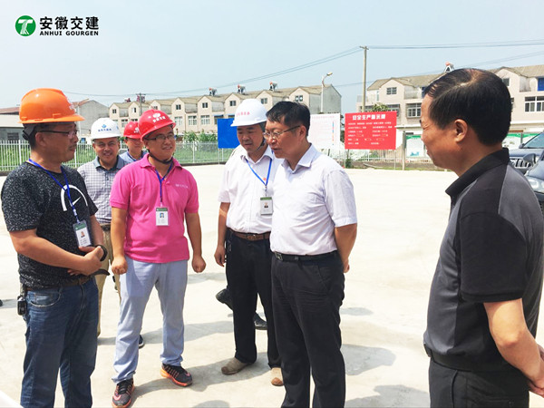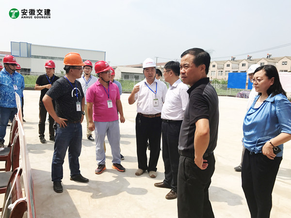7月18日,安徽省交通控股集團總經理錢東升、建管處處長蘇新國、項目辦主任鄒正明等領導一行蒞臨安徽交建滁淮高速定長段路面一標項目部進行檢查指導。