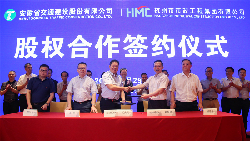 6月29日下午,安徽省交通建設(shè)股份有限公司(以下簡稱交建股份)與杭州市市政工程集團(tuán)有限公司(以下簡稱杭州市政)簽署購買資產(chǎn)意向協(xié)議,交建股份擬購買杭州市政70.83%的股權(quán)。此項(xiàng)收購?fù)瓿珊?,交建股份將擁有公路、市政雙特級資質(zhì),圍繞拓展全國業(yè)務(wù)戰(zhàn)略,進(jìn)一步拓展長三角市場。交建股份實(shí)控人、祥源控股集團(tuán)有限責(zé)任公司董事長俞發(fā)祥、杭州市城鄉(xiāng)建委副主任楊鐵定、杭州市城投集團(tuán)副總經(jīng)理余敏紅出席簽約儀式。