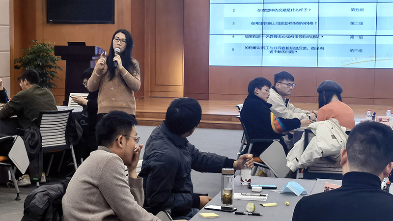 在共創(chuàng)會環(huán)節(jié),大家就“如何快速融入公司”、“你希望的領導風格”、“假如你是管理者,如何帶好團隊”等問題各抒己見并展開激烈討論。這一環(huán)節(jié)旨在促進新員工的成長和融入,讓大家深刻體會團隊、責任、執(zhí)行的意義。